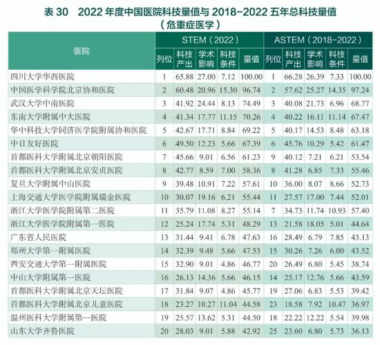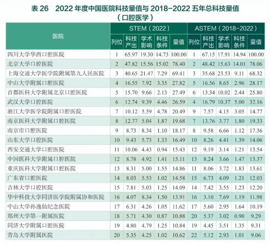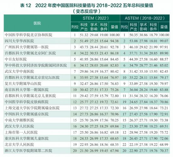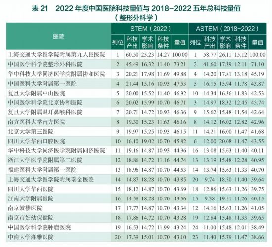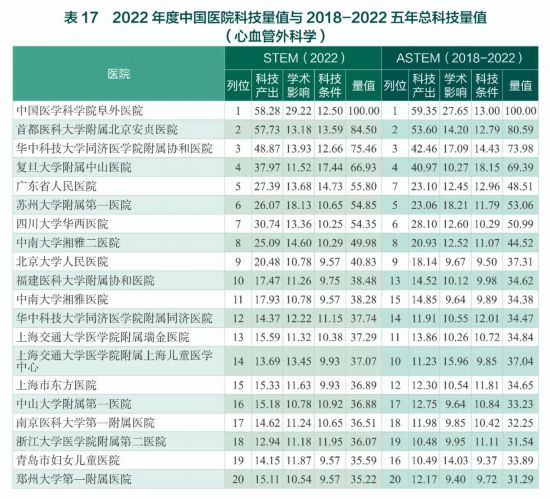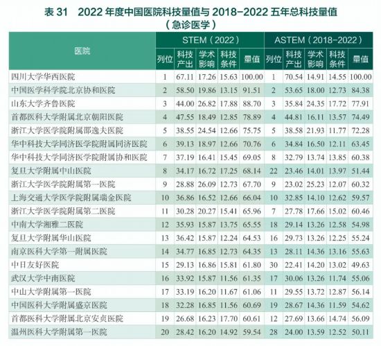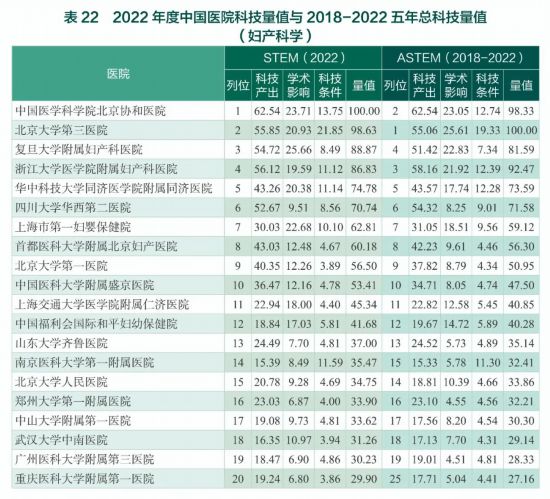 2022年度中國醫(yī)學院校/中國醫(yī)院科技量值(STEM)暨2018-2022五年總科技量值(ASTEM)發(fā)布