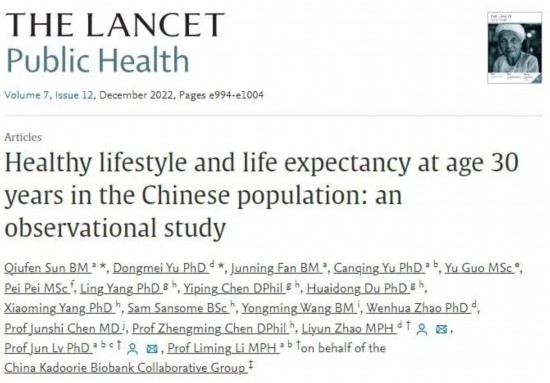 中國疾病預防控制中心營養(yǎng)與健康所趙麗云研究員團隊與北京大學李立明教授團隊在《柳葉刀-公共衛(wèi)生》(The Lancet Public Health)期刊上發(fā)表了一篇題為“Healthy lifestyle and life expectancy at age 30 years in the Chinese population: an observational study”[1] 的研究論文。該研究是第一項在中國人群中開展的多項生活方式因素與期望壽命之間關聯(lián)的綜合性研究。研究顯示,推廣健康生活方式可以降低心血管疾病、惡性腫瘤以及慢性呼吸系統(tǒng)疾病等重大疾病的死亡率,從而提高中國成年人的期望壽命。