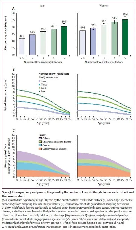 [1]Sun Q, Yu D, Fan J, et al. Healthy lifestyle and life expectancy at age 30 years in the Chinese population: an observational study[J]. The Lancet Public Health, 2022.