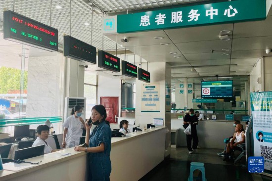 8月6日,在平原縣第一人民醫(yī)院患者服務(wù)中心內(nèi),患者向值班醫(yī)生咨詢(xún)情況。新華社記者 高天 攝