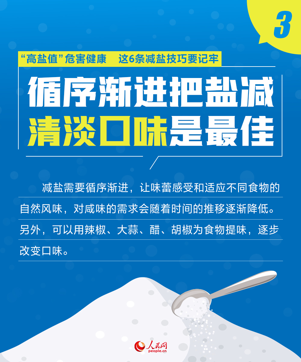 每年9月15日所在的第三周是“915”減鹽周。減鹽是一件關(guān)乎每個人健康的大事。鹽的主要成分是氯化鈉。高鈉攝入作為高血壓的重要誘因,會使心腦血管疾病發(fā)病與死亡的風險升高,增加腦卒中、冠心病、心血管疾病的死亡風險。同時,高鈉飲食還可能增加慢性腎臟病、骨質(zhì)疏松、胃癌、老年人認知障礙等其他疾病風險。吉林大學白求恩第一醫(yī)院心血管內(nèi)科副主任王宇石在接受人民網(wǎng)記者采訪時提示,別讓“高鹽值”成為你的“健康殺手”,這6條減鹽技巧要記牢。