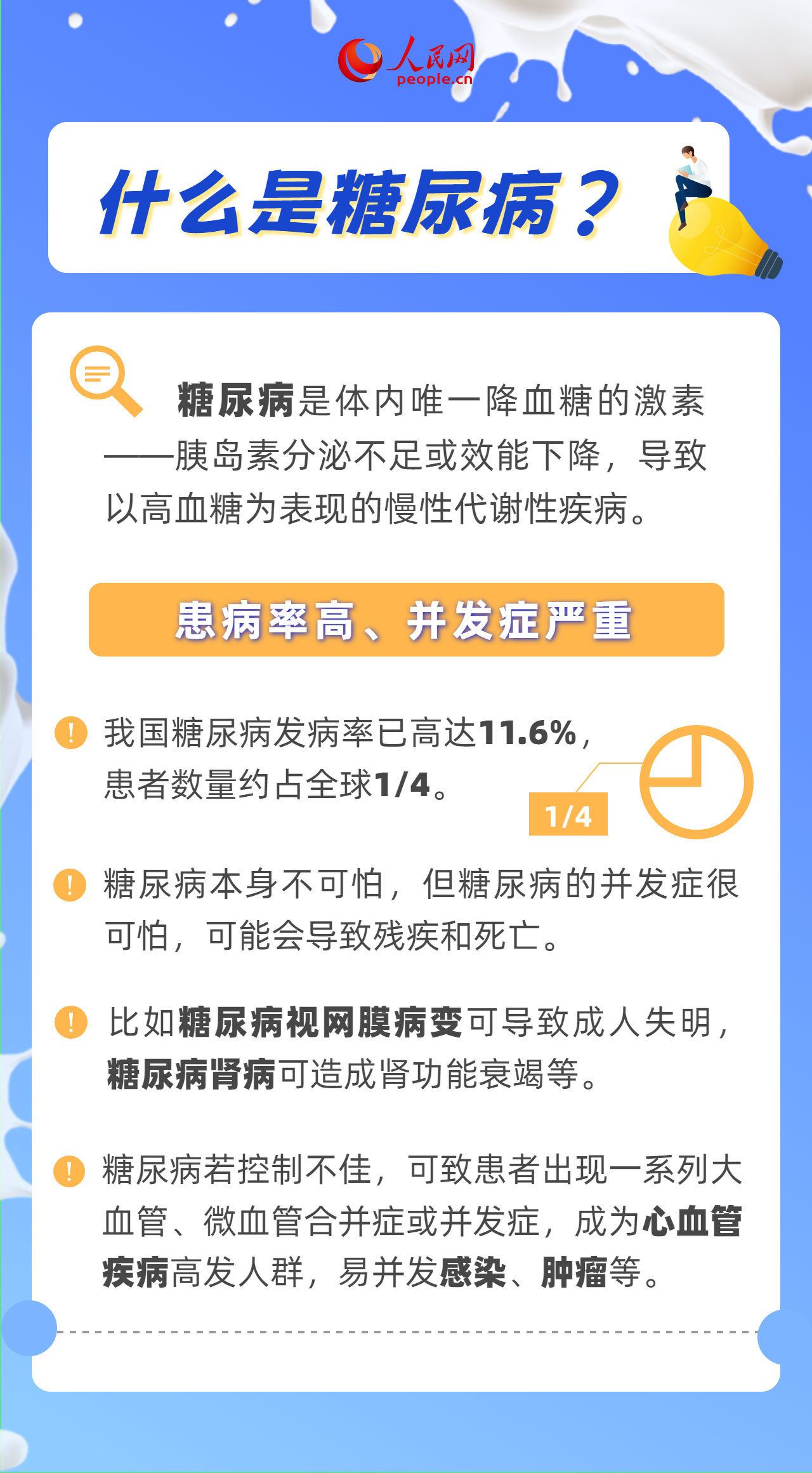 編者按:每年11月14日為聯(lián)合國(guó)糖尿病日,今年的宣傳活動(dòng)口號(hào)是“知曉風(fēng)險(xiǎn) 知曉應(yīng)對(duì)”。糖尿病是吃糖導(dǎo)致的嗎?糖尿病可以根治嗎?六個(gè)糖尿病防治知識(shí),助你遠(yuǎn)離“甜蜜殺手”。