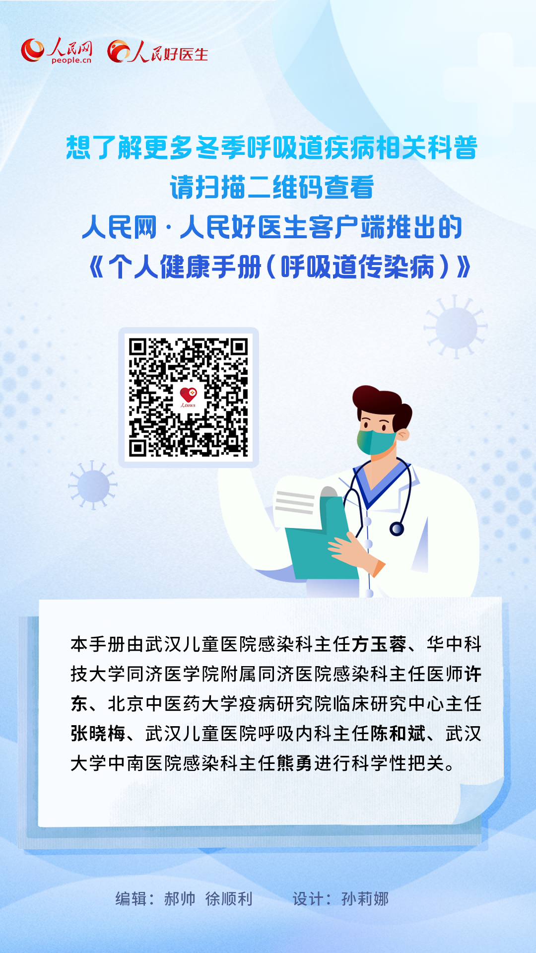 編者按:每年進(jìn)入冬季,呼吸道疾病都是高發(fā)時(shí)期。近期,呼吸道感染性疾病以流感為主,此外還有鼻病毒、肺炎支原體、呼吸道合胞病毒、腺病毒等。為積極做好冬季呼吸道傳染病科普工作,人民網(wǎng)·人民好醫(yī)生客戶端推出《個(gè)人健康手冊(cè)(呼吸道傳染。,集納專家觀點(diǎn),科普相關(guān)知識(shí),助力提高大眾自我健康管理能力和健康素養(yǎng)。
