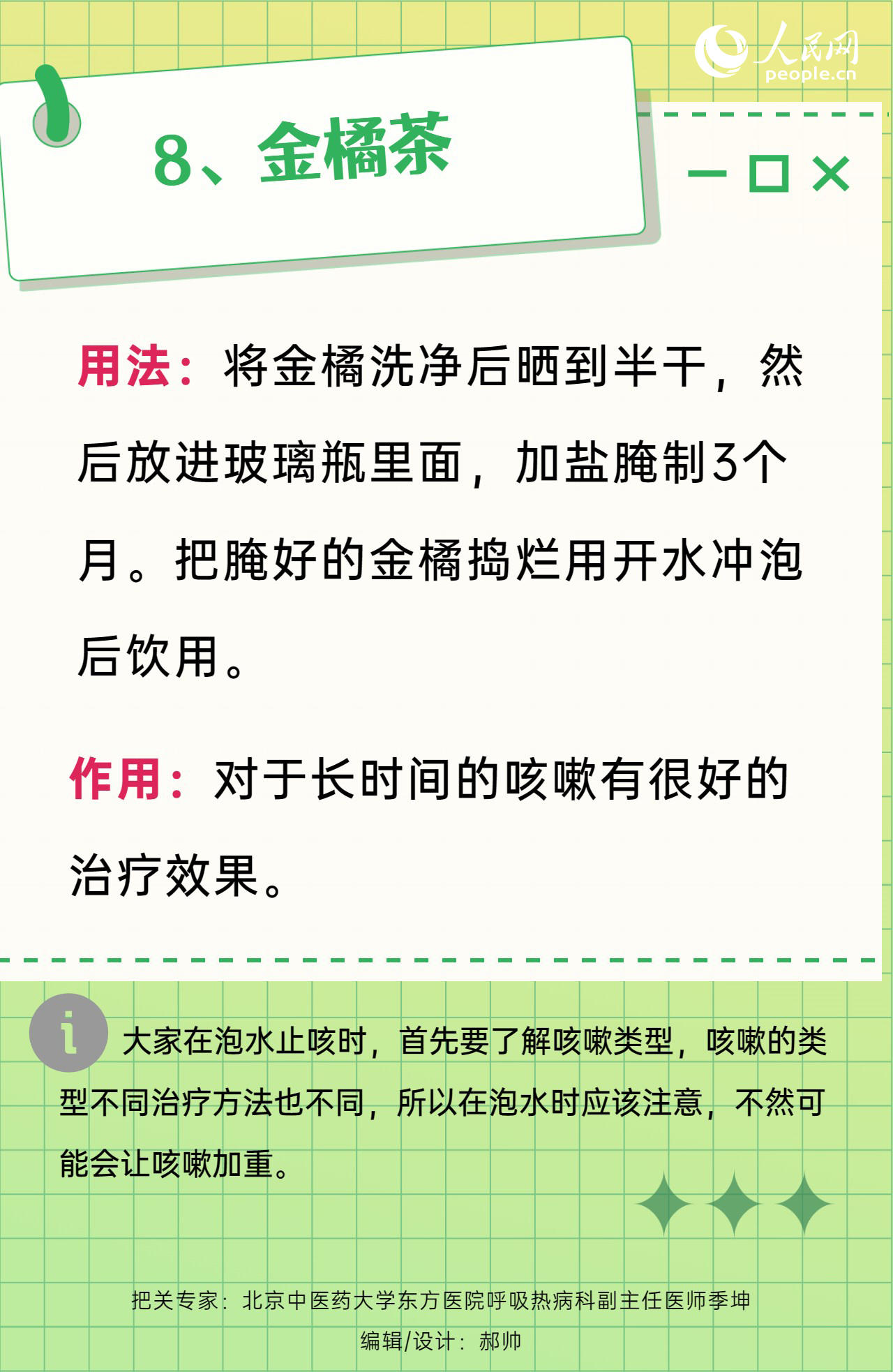 編者按:近期,身邊很多人都在 " 咳咳咳 "。對于持續(xù)較長時間的咳嗽癥狀,患者可以根據(jù)咳嗽的類型,使用食療方法進行緩解。其中,泡水就成為日常生活中一個簡單實用的方法。下面,就請中醫(yī)專家為大家提供一些日常緩解咳嗽的泡水配方,供參考。