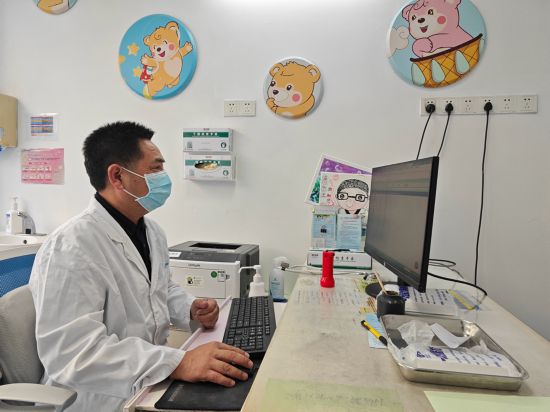 長(zhǎng)春市兒童醫(yī)院中西醫(yī)結(jié)合科主任薛斌在舒蘭市人民醫(yī)院兒科療區(qū)查房。受訪對(duì)象供圖