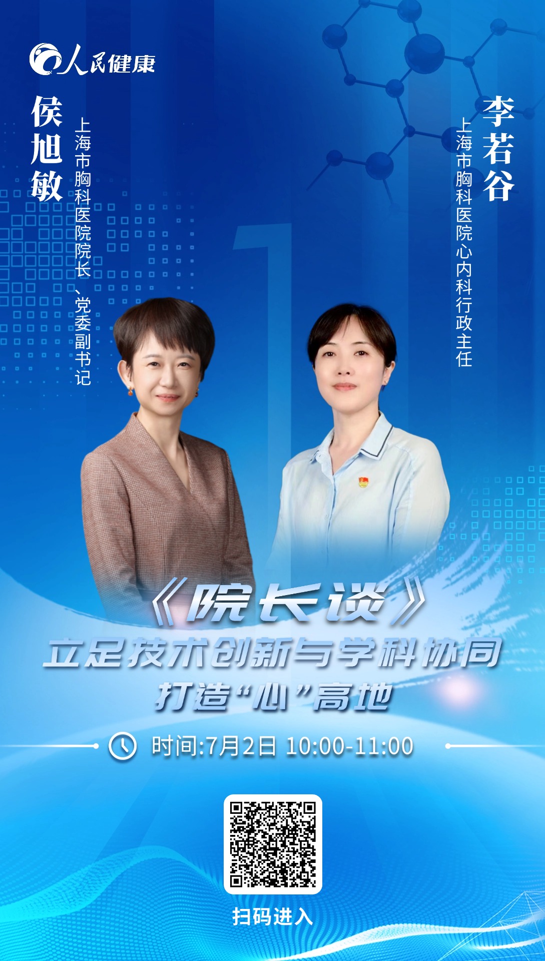 7月2日10:00至11:00,上海市胸科醫(yī)院院長、黨委副書記侯旭敏,上海市胸科醫(yī)院心內(nèi)科行政主任李若谷做客演播室,就“立足技術(shù)創(chuàng)新與學(xué)科協(xié)同 打造‘心’高地”話題與網(wǎng)友在線交流。