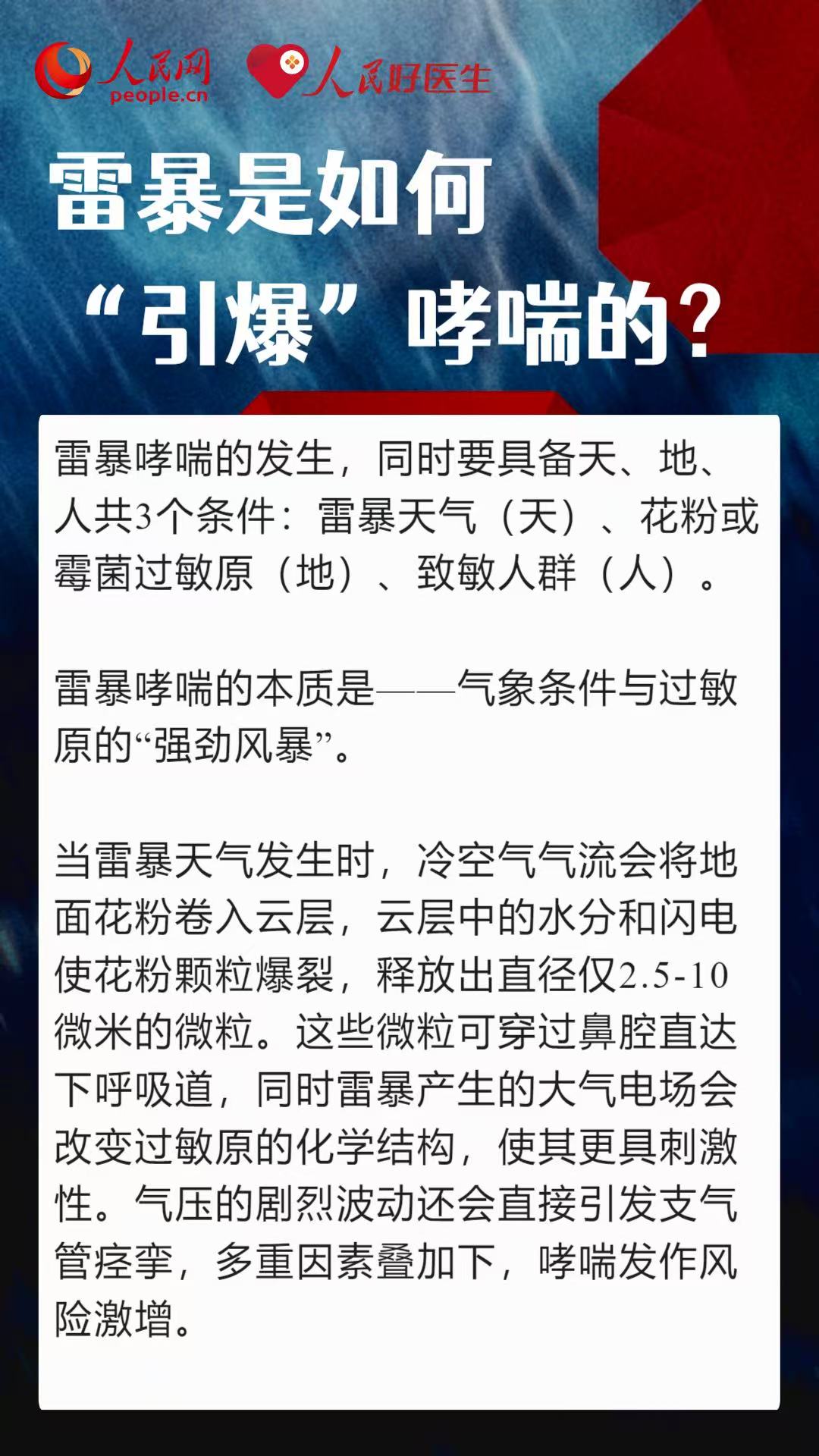 編者按:近期,雷暴天氣頻繁,不少人出現(xiàn)咳嗽、喘憋等癥狀,甚至因此危及生命,醫(yī)院里此類患者明顯增多。醫(yī)生提醒,雷暴哮喘多發(fā)生在暴雨后,是一種在雷暴天氣下出現(xiàn)的哮喘急性發(fā)作現(xiàn)象,與花粉濃度過高有關(guān)。遇到雷暴天氣,公眾需做好防范。